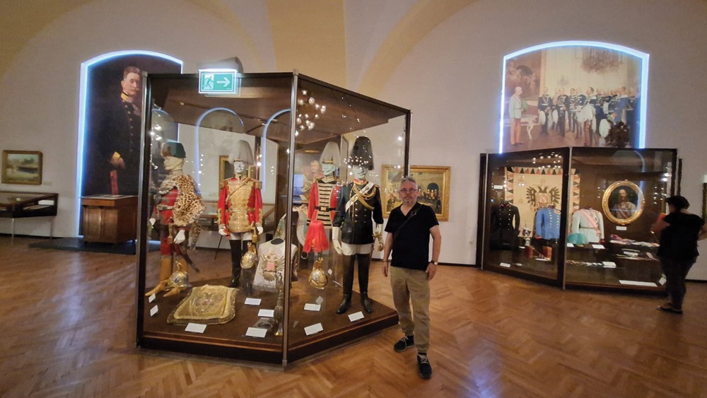 La Muzeul de Istorie Militară este tot ce înseamnă istorie militară a unui imperiu – uniforme, armate, momente, de exemplu automobilul și uniforma, urmele de sînge, cît se mai văd ele, a lui Franz Joseph, de la asasinatul din 15-28 iunie 1914. Deci, totul este foarte bine organizat și, bineînțeles, Bucovina e peste tot în istoria militară. Peste tot, în hărți, în imagini, momente din Primul Război Mondial și pînă atunci, toate evenimentele care au însoțit evoluția Imperiului și se referă și la Bucovina. Bucovina a fost parte a Imperiului, să fim foarte bine înțeleși, și ca atare se regăsește. Tot felul de imagini, de hărți, documente extrem de bine expuse și foarte valorizate, și foarte accesibil muzeul ca și destinație, ca și obiectiv. Ceea ce mi-a plăcut foarte mult că încă de la intrare erau cred că vreo 50 de elevi, foarte micuți, așa, și care făceau diverse jocuri, făceau diverse machete sub coordonarea unor educatori, mai încolo am văzut elevi de liceu. Muzeul se ocupă de tot ce s-a întîmplat de la apariția Casei de Habsburg, apariția primelor unități militare, evoluția uniformelor. El e foarte bine organizat pe uniforme, pe armate, pe tipuri de arme, pe conducători, pe evoluția armelor, am văzut tot felul de lucruri extrem de importante, momente din diverse războaie, războaiele cu Prusia, războaiele napoleoniene – Napoleon e foarte bine reprezentat și nici n-avea cum să nu fie – pînă la Marele Război din 1914-1918 și ultimele momente militare care au definitivat, să spunem așa, destinul Monarhiei Habsburg.