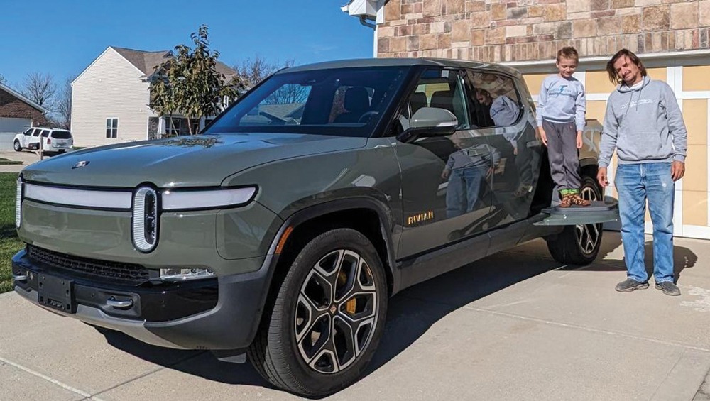 (De la momentul la care ai cumpărat Rivianul și pînă acum, compania aceasta a mai crescut, s-a mai dezvoltat, produce mai multe mașini?) Da, Rivianul eu îl urmăresc cu foarte mare interes pentru că sînt și implicat, adică implicat în sensul că dețin și acțiuni la Rivian. Vreau să spun că nu mai departe de 12 martie luna asta au făcut public configuratorul pentru următoarea mașină pe care vor începe să o livreze. Asta venind undeva luna viitoare, nu mai tîrziu de iunie, mașina R 2, este un crossover, cum aș putea eu spune în echivalentul european, ar veni să zicem un fel de Dacia Duster. Și o să fie la un preț de ăsta, cu toate opțiunile, o să fie undeva la un 58.000 de dolari, dar ținta lor este să-l facă de 45.000 de dolari. Acum ce se întîmplă? Ei produc mașinile astea, cum am eu camioneta, cum sînt SUV-ul și R2-ul, toate astea trei tipuri le produc la o singură uzină care funcționează acum în uzina originală din Normal Illinois, chiar așa se numește orașul respectiv, Normal. Este în construcție la ora actuală, și zic că o să termine în 2028, uzina din statul Georgia, lîngă Atlanta, uzină care o să aibă o capacitate de vreo 250.000 pînă 350.000 de mașini anual, specific pentru tipul ăsta nou, pentru R2, și atunci îți dai seama o să intre un pic mai altfel pe piață, dar unde stau ei foarte bine este la dezvoltarea platformei de software a mașinii, pentru că, practic, Rivianul este un calculator pe patru roți. Și eu am mai spus cu ceva timp în urmă, ei au un contract de livrare a software-ului de funcționare pentru cei de la Volkswagen. Cei de la Volkswagen au bătut palma pentru 5 miliarde de dolari ca să aibă acces la treaba asta. Iar, ca să zic așa în premieră, dacă nu mă înșel, nu cred că am mai spus aici, următorul Volkswagen Golf al nemților de la Volkswagen va fi Volkswagen Golf electric și va fi pe platformă Rivian. Și de acolo restul vor merge pe platformă, pe soft-ul celor de la Rivian, pentru că e foarte bun. Și, nu mai departe de acum 3-4 zile a bătut palma Rivianul cu cei de la Uber. Iar Uber-ul, după ce li s-au prezentat performanțele soft-ului Rivian și, mă rog, alte detalii tehnice, au semnat un contract pentru 1,28 miliarde de dolari pentru livrarea, începînd din 2028 și pînă în 2030, a 50.000 de Rivian-uri R2 pentru robot-taxi. (Foto: Florin Senciuc cu Rivianul, cu unul dintre nepoți și cu TJ Scarige, fondatorul Rivian)