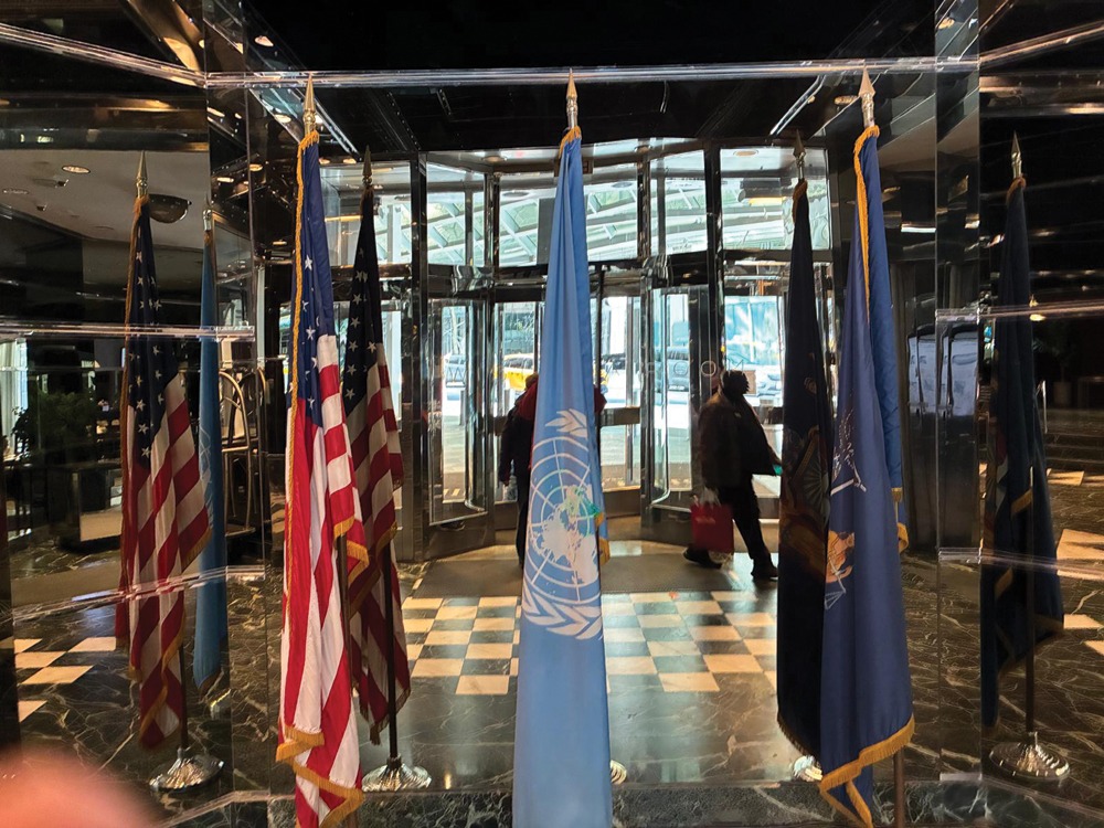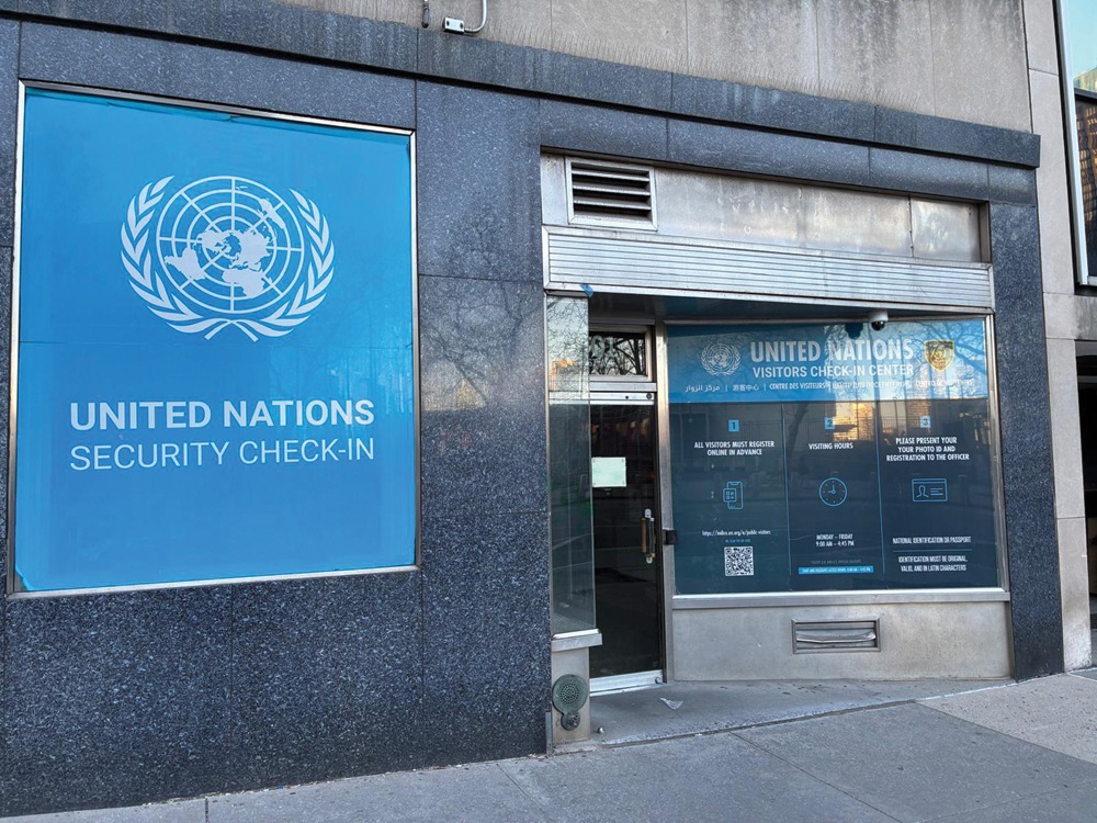 Este un cartier diplomatic acolo, în aceeași clădire cu hotelul, dar pe o parte laterală, așa. De fapt, adresa este: 1-2, United Nation Plaza, dacă mi-aduc eu bine aminte. Deci, pe partea dreaptă, ca orientare, era sediul misiunii Statelor Unite ale Americii la ONU. Pe partea cealaltă, perete în perete cu hotelul, Kuweitul avea misiune permanentă la Națiunile Unite. Puțin mai sus, la vreo 20 de metri, era Egiptul. După aia am mai găsit India, Coreea de Sud avea peste drum de hotel, Casa Ugandeză. La consulatul Columbiei, chiar în fața consulatului, acolo, era o mașină care vindea mîncare. Food truck. Deci, ca la nebuni, așa. Ce mi-a mai atras atenția, o puzderie, sute, dacă nu chiar mii de camere de luat vederi… Ceea ce, la urma urmei, e normal. E normal să fie așa, pentru că zona e de așa natură.