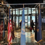 Trecînd peste astea, am făcut o vizită de jur-împrejur acolo să văd și eu despre ce-i vorba. Cînd stai peste drum de Națiunile Unite, kilometrul zero, curiozitatea te cam scoate din cameră, să zicem. Și am ieșit pe afară, pe acolo. Ce mi-a atras atenția prima dată este că steagurile, cum vedem noi prin vederi, prin chestii de-acestea la televizor, steagurile respective sînt arborate numai pe perioada orelor lucru ale zilei. Deci, pînă la ora opt dimineață nu sînt steaguri. Steagurile sînt de la ora opt dimineața pînă la patru după masă sau cinci. Și apoi le dau jos.