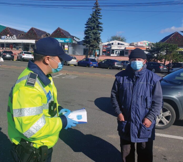 Acțiune a polițiștilor în fața Pieței Centrale din Suceava în cadrul căreia au împărțit măști de protecție: ”Da, așa se poartă corect masca. Și acum am să vă invit respectuos să mergeți acasă, pentru că abia vă țineți mîinile în buzunar și simt că v-ar tenta să vă plimbați un pic prin piață pe lîngă poșetele cumpărătoarelor”.