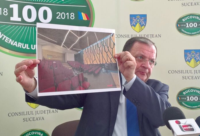 Gheorghe Flutur prezintă o imagine cu viitoarea sală care va găzdui şedinţele Consiliului Judeţean şi care se va numi Sala „Unirii”: „Sper că vă place şi mai sper că locuitorii judeţului nostru vor fi bucuroşi că vor avea un loc de întîlnire. Bineînţeles, prin reprezentanţii lor, adică noi”.
