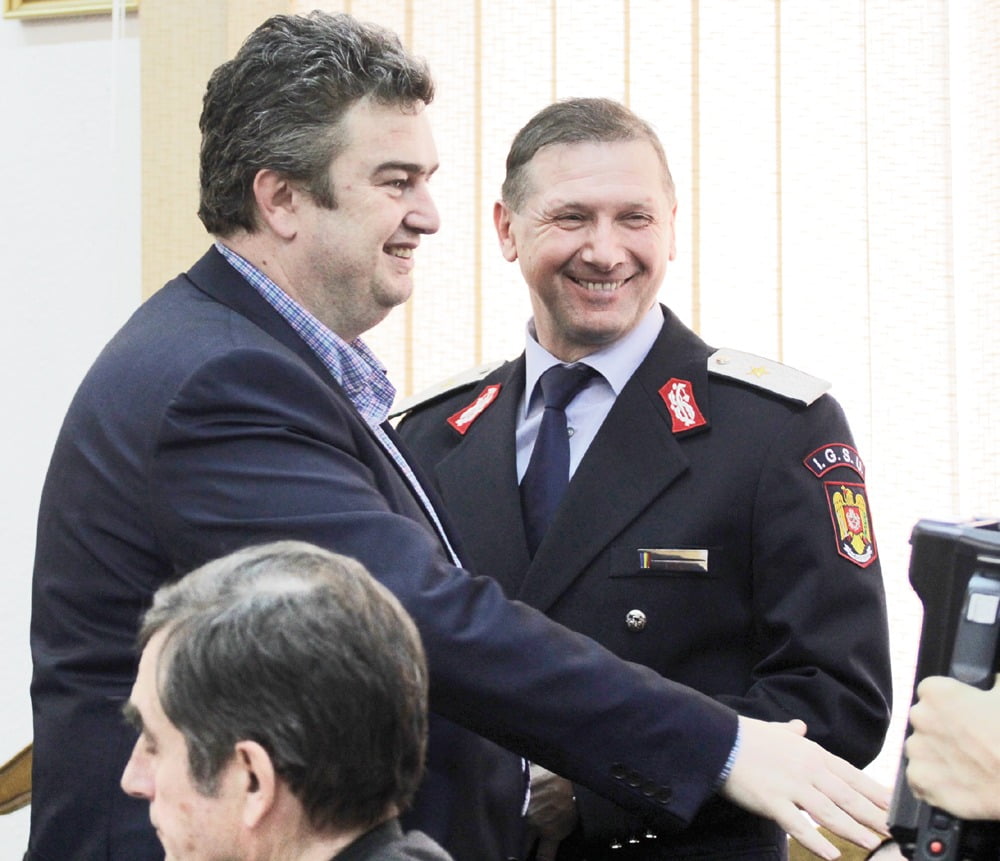 Şeful ISU Suceava, generalul Ion Burlui, şi şeful administraţiei judeţene, Cătălin Nechifor, relaxaţi peste măsură înaintea unei şedinţe a CJ: „Domn preşedinte, rîdem, glumim, dar ar fi bine să fiţi un pic mai reţinut. Ştiţi că DNA-ul este peste tot şi, pentru a fi premiaţi de şefii de la Bucureşti, procurorii ar fi în stare să vă facă dosar pentru dare şi luare de mînă”.