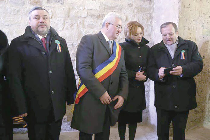 De la stînga la dreapta, Ioan Balan, Ion Lungu, Mirela Adomnicăi şi Gheorghe Flutur, în Sala Voievozilor de la Cetatea de Scaun a Sucevei: „Uitaţi ce mi-a trimis cineva de pe un număr necunoscut şi m-a rugat să vă transmit şi vouă: « Moldova nu-i a voastră, ci a urmaşilor, urmaşilor voştri în veacul vecilor, amin ». Spune că-i cineva de la Putna”.