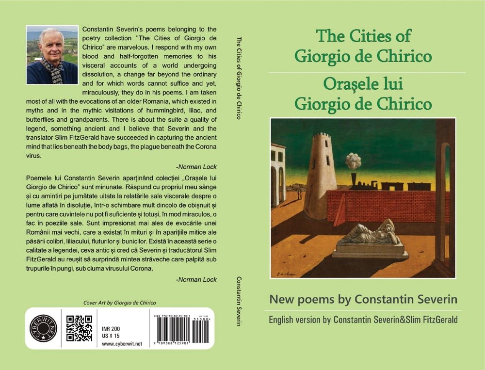 Renumele de artist vizual al lui Severin este prezent în special în poezia-titlu, „Orașele lui Giorgio de Chirico”, aducând un omagiu acestui pictor metafizico-suprarealist italian de acum un secol, ale cărui pânze bântuite de străzi și piețe goale pot găsi ecou astăzi în carantina în care poetul a scris aceste poezii. Toate datate în intervalul aprilie-iunie 2020, acestea sunt poezii scrise în toiul primului val al pandemiei Covid-19 („ne-am întâlnit când lumea era o uriașă cameră de reanimare / de același tub de oxigen ne legau anxietatea și disperarea”). Și există efecte rafinate atunci când simțurile vizuale și auditive ale poetului par să se contopească, accentuând întotdeauna disperarea („fluturi de noapte ochi zburători care veghează prăbușirea” / (…) „fluturi de noapte mici sarcofage ale libertății”).