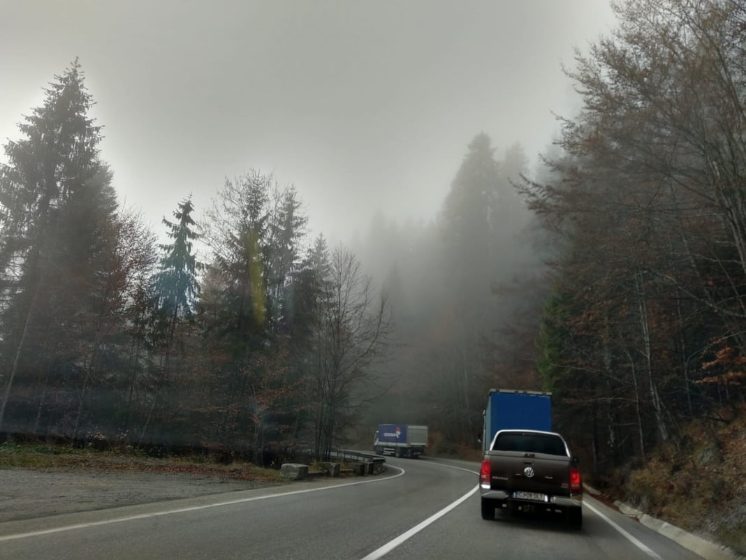După ce a însoțit mașina pe drumul parcurs prin județul Suceava și o parte din județul Neamț, soarele s-a pierdut în ceață. Cu toate că la Radioul Public se anunța că în România este ceață doar în zonele joase, la fel de ceață era și în zonele montane. Studioul de la București este prea departe de Ceahlău, astfel încît redactorii de serviciu au scuza că nu au avut cum să vadă pînă la o așa distanță. Lacul de la Bicaz este secat pe porțiuni importante. Văd zi de zi asta pădurile care îl păzesc de pe margine. Ca să nu te plictisești pînă la Miercurea Ciuc, natura îți scoate în cale frunze de diferite culori. Din cînd în cînd cîte o turmă de oi sau de vaci vrea să-ți demonstreze că nu tot laptele și nu toată carnea sînt de import. Bușteni de lemn proaspăt tăiați așteaptă să fie ridicați de pe marginea drumului, iar de pe multe dintre coșurile caselor iese fum, semn că nu toată lumea este lovită de criza lemnului de foc. Afară sînt 4-5 grade, cu vreo 10 mai puține decît temperaturile anunțate de aplicațiile de pe telefonul mobil cu o zi în urmă. Biserica superbă din Ditrău îți face cu ”mîna” de la cîțiva kilometri distanță, iar casele cu arhitectură locală își arată fața proaspătă ori încearcă să-și ascundă rănile produse de trecerea timpului. Cimitire pline de flori alunecă pînă aproape de șoseaua care este peticită ici-colo. Steagul tricolor flutură pe fațadele multor primării, în curțile multor biserici și pe stîlpii multor localități și nicăieri nu vezi maghiari și români certîndu-se pe la porți ori prin fața crîșmelor.