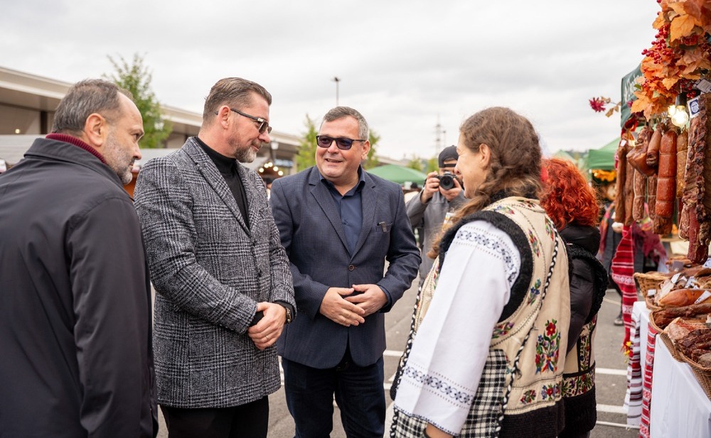 Prefectul Traian Andronachi, vicepreședintele CJ Nicolae Robu și directorul Centrului Cultural Bucovina, Cătălin Axinte, vizitînd standurile de la Tîrgul de Toamnă ”Produs în Bucovina”: ”Arată bine toba aia și cred că e bună, dar mai bună e toba mea pe care o bat atunci cînd fac cîte ceva”.