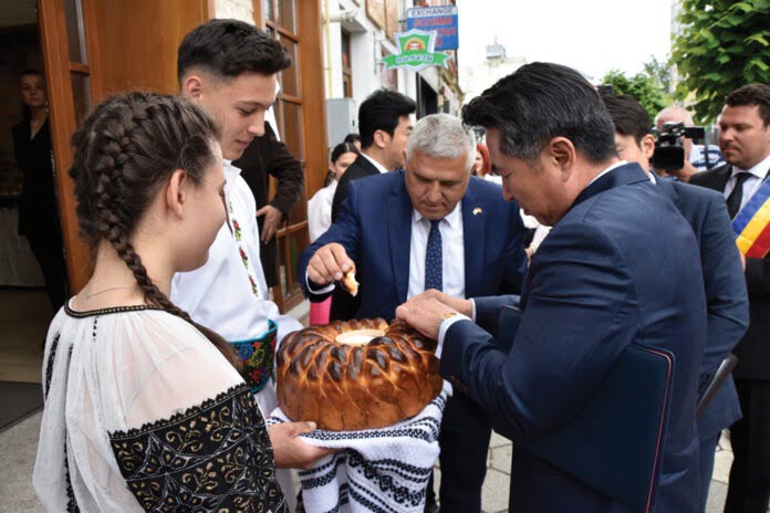 Ambasadorul Coreei de Sud, Excelența Sa Rim Kap – Soo, întîmpinat după tradiția locală, la intrarea în sediul noului consulat onorific al țării sale: ”Deci, domnule ambasador, se rupe o bucată de colac, după care se moaie în sare. Exersați, pentru că vin îndată micii cu muștar”.