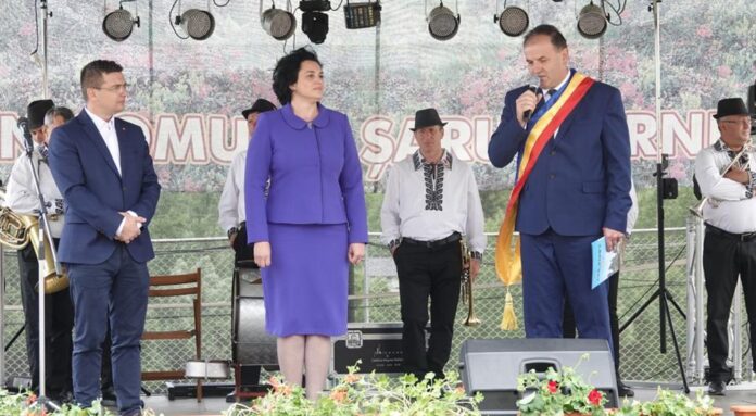 Deputata PNL de Dorna, Angelica Fădor, la Șaru Dornei, la ”Sărbătoarea bujorului de munte”, alături de primarul Ioan Cătălin Iordache: ”Și trebuie să recunosc, doamna deputat, că anul acesta s-au făcut bujori mai mulți ca în alți ani, și asta datorită Guvernului Ciucă. Știți de cîte ori mi-au apărut bujori în obrăjori în timp ce lumea mă lua la împins vagoane din cauza deciziilor Guvernului?”.