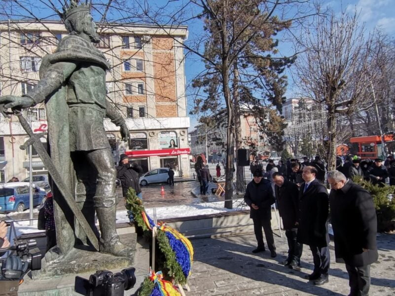 Foto Capul plecat, domnule prefect! De către Jupanu - 18 februarie 2023 FacebookTwitterPinterestWhatsApp Primarul Sucevei, Ion Lungu, și prefectul Alexandru Moldovan la statuia lui Petru Mușat, la 635 de ani de la atestarea documentară a Cetății de Scaun și a Sucevei: ”Domn prefect, capul plecat! Nu vedeți că domnitorul are sabia la el?”.