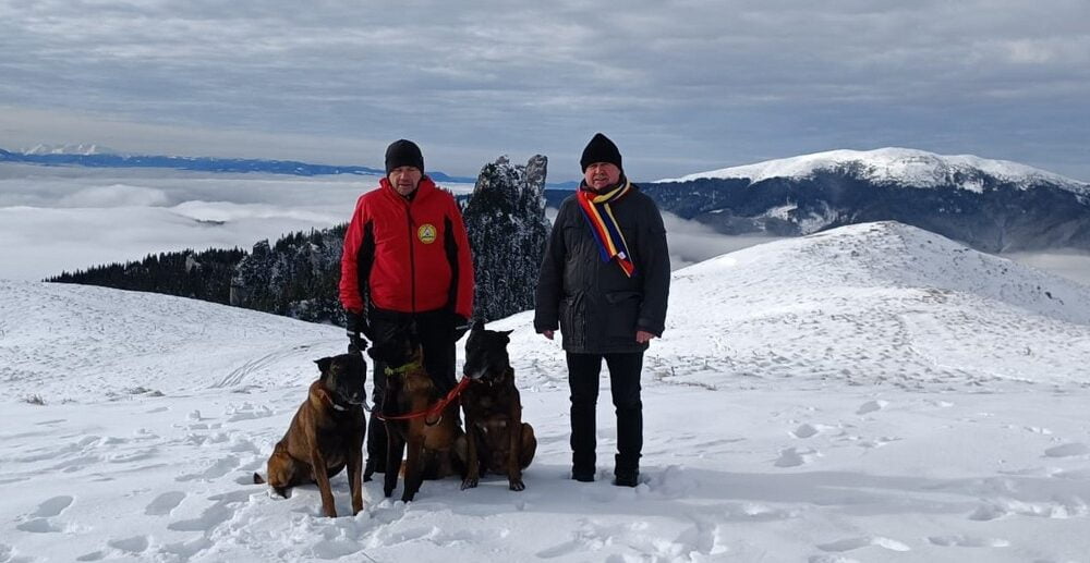 Vicepreședintele Consiliului Județean Niculai Barbă și salvatorul montan Dumitru Ioan Pașcu, alături de cîinii Erik și Yan, care au trecut de testele susținute la Padina, în Munții Bucegi: ”Uite și, tu, Erik, cît sînt de cruzi. Ei sînt îmbrăcați din cap pînă în picioare, iar pe noi ne-au scos pe frigul ăsta în pielea goală. Și ne mai și fotografiază, ca să rîdă lumea de noi. Ia dă un pic telefonul să sun la Direcția pentru Protecția Cîinilor”.
