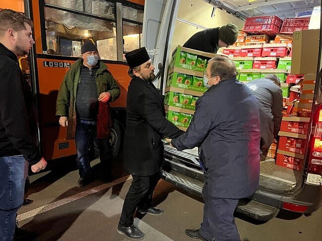 Gheorghe Flutur a pus mîna și a ajutat la descărcarea a patru microbuze cu alimente care au fost trimise la Cernăuți: ”Ia, părinte. De la mine mai puțin, de la Dumnezeu mai mult. Ți-aș da și eu mai mult, dar văd că deja te opinești”.
