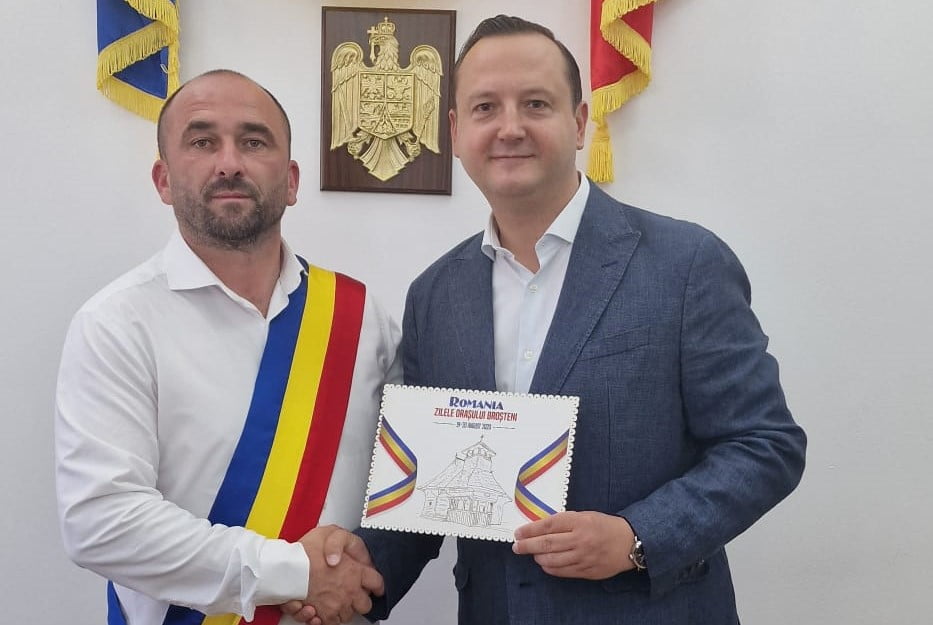 Prefectul de Suceava, Alexandru Moldovan, cu primarul orașului Broșteni, Alexandru Hurjui, și cu o diplomă: ”Domn primar, să fie primită. Pe diplomă o cheamă cumva Alexandra? Ca să știu cum să o strig atunci cînd ne invitați să ciocnim un pahar de Alexandrion în cinstea Zilelor Orașului Broșteni”.