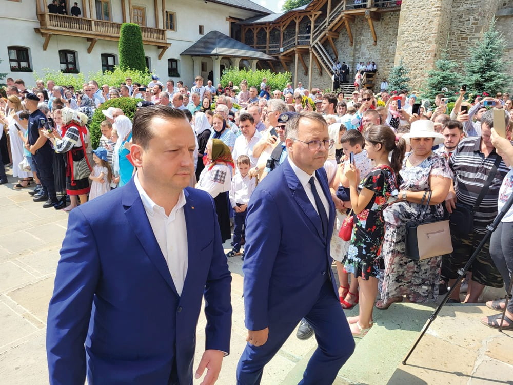 Prefectul PNL al Sucevei, Alexandru Moldovan, și subprefectul PSD Cristian Șologon, pășind spre interiorul bisericii Mănăstirii Putna, acolo unde-și doarme somnul de veci Ștefan cel Mare: ”Șefu`, este unul care ne fotografiază. Degeaba face, pentru că nu este vorba despre un finish <la fotografie>. Se vede limpede că eu am cîștigat cursa, pentru că am pieptul mai bombat”.