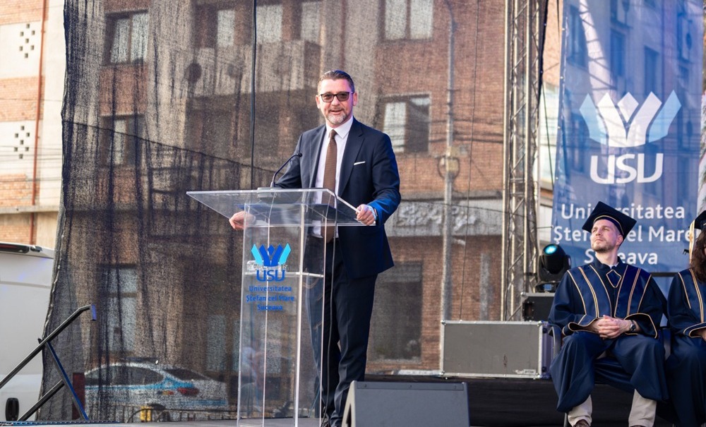 Printre cei care le-au vorbit absolvenților USV s-a numărat și prefectul de Suceava, avocatul Traian Andronachi: ”Stimați absolvenți, să știți că greul de-abia începe. De ce spun asta? Pentru că în nici una din sălile de judecată unde am ținut pledoarii nu era atîta lume și am emoții”.