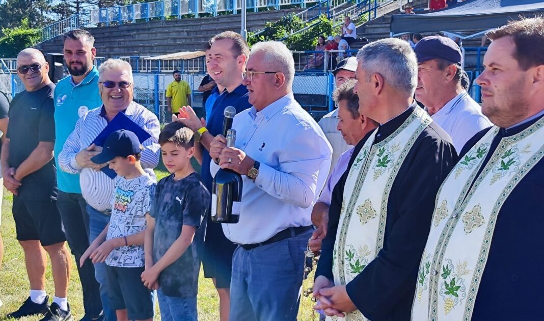 Primarul Ion Lungu și viceprimarul Lucian Harșovschi, la evenimentul care a marcat împlinirea a 60 de ani de rugby la Suceava: ”Cine înscrie un eseu are sticla asta de șampanie de la mine. Și asta nu e tot. Cine scrie un eseu despre evenimentul de astăzi primește o excursie gratuită la Mălini, la Casa Memorială <Nicolae Labiș>. <Înscriu și plîng, înscriu>”.