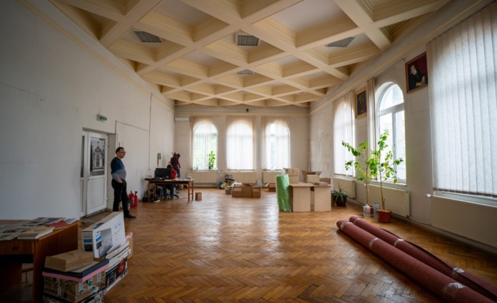 Directorul Gabriel Cărăbuș, la debutul lucrărilor de modernizare a Corpului B al Bibliotecii Bucovinei ”I. G. Sbiera” din Suceava: ”Gata cu parchetul, gata cu Ion Creangă. Păcat. De-acum gresie sau pavele și cărți scrise cu Inteligența Artificială”.