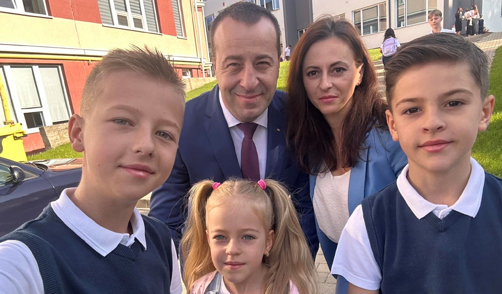 Cei trei copii ai viceprimarului Sucevei Lucian Harșovschi, pregătiți pentru școală: ”Și să știți de la tăticu`, dragii mei, că cine se școală de dimineață departe ajunge”.