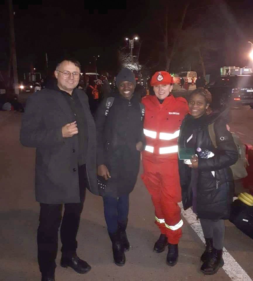 Subprefectul de Suceava, Cristian Șologon, mîndru să fie alături de o voluntară și de două refugiate, în Vama Siret: ”Bine ați venit și sper că veți rămîne cu o amintire frumoasă despre Suceava. Dar pentru asta trebuie să vă grăbiți și să părăsiți județul nostru cît e întuneric”.