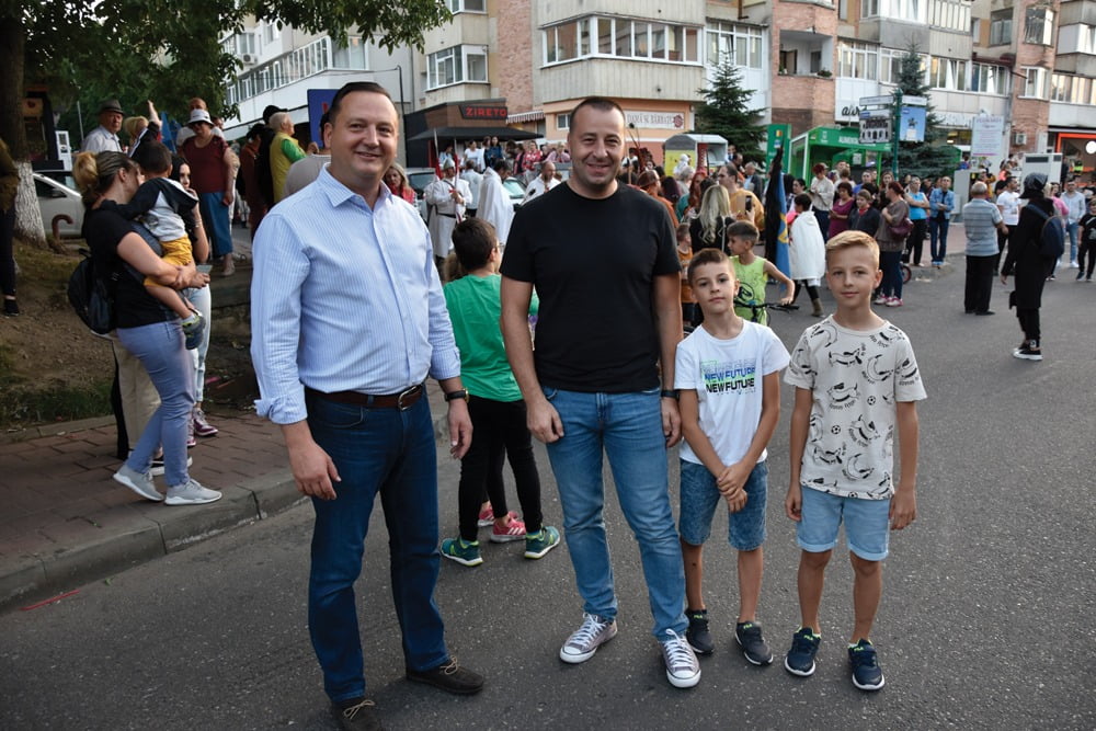Prefectul Alexandru Moldovan și viceprimarul Lucian Harșovschi, cu cei doi băieți ai săi, la parada din deschiderea Festivalului de Artă Medievală: ”Am venit și noi să vedem ce se mai poartă. Am văzut niște coifuri interesante, din oțel. Cred că o să renunțăm la coifurile de ziar cu care mergem la meci. Și, oricum, cine mai citește ziare în ziua de astăzi, iar din site-uri nu ne putem face coifuri”.