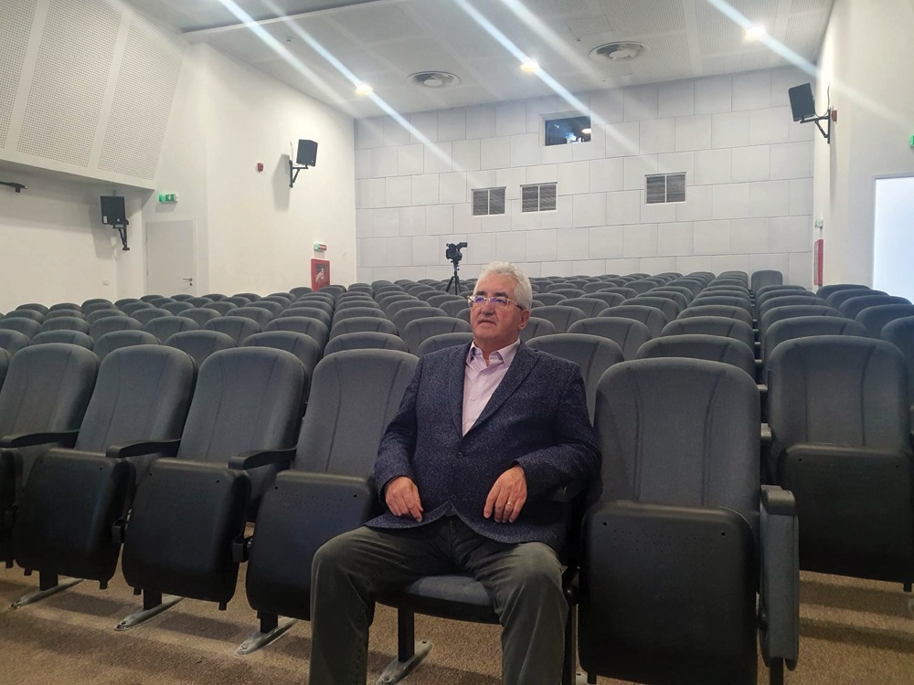 Primarul Ion Lungu în sala de spectacole a Centrului Multifuncțional ”Arta” din Ițcani, despre care spune că va fi funcțional începînd cu finele acestei luni: ”În primul rînd sala de spectacole va fi pentru filme. În al doilea rînd, eu mi-am rezervat deja loc în primul rînd. Că doar nu era să stau în fundul sălii. Hai să film serioși”.