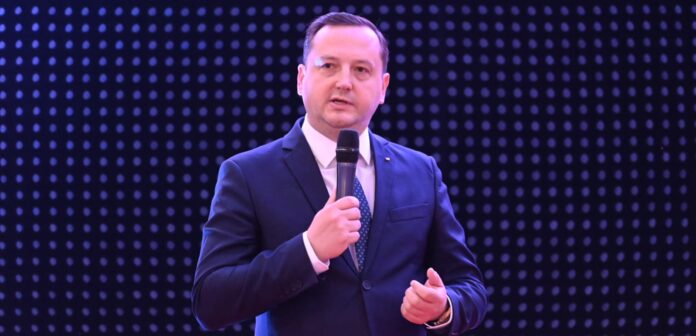 Prefectul de Suceava, Alexandru Moldovan, unul dintre cei care au luat cuvîntul la Gala Oamenilor de Afaceri: ”Să știți că la mine veți găsi ușa mereu deschisă. Rugămintea este să o închideți, ca să nu mă tragă curentul”.
