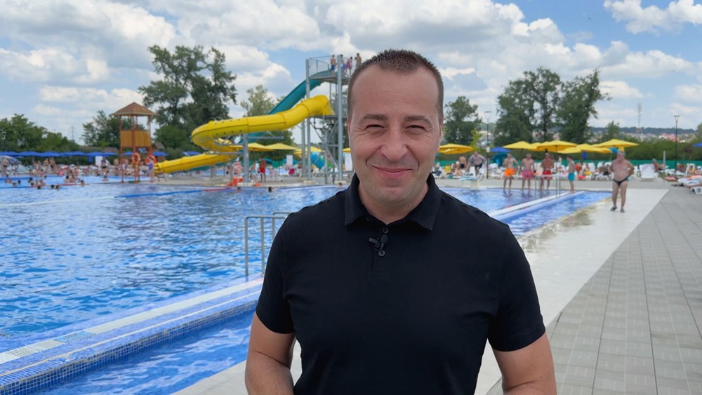 Viceprimarul Sucevei Lucian Harșovschi, la ștrandul municipalității de la Ițcani: ”Sînt în timpul serviciului și nu-mi permit să stau la plajă. În schimb stau la fotografiat cît vreți, ca să vadă lumea că-s la treabă”.