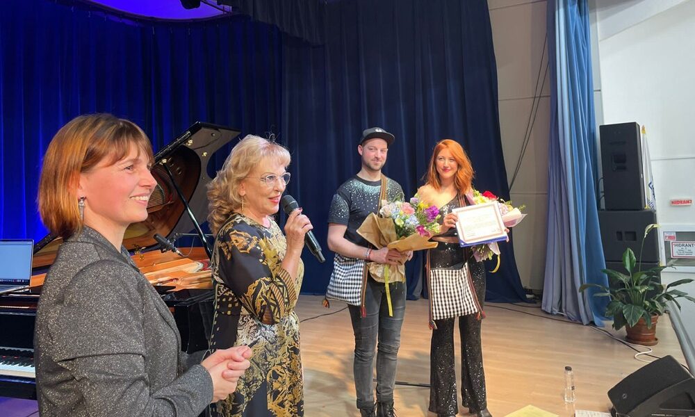 Președinta onorifică a Alianței Franceze Suceava, Sanda-Maria Ardeleanu, și directoarea organizației, Mariana Șovea, le-au oferit cîte un buchet de flori lui Sophie Loretan și Simon Jaccard, cei doi membri ai grupului elvețian ”Sophie de Quay”, care au compus imnul Alianței Franceze Suceava, pe care l-au lansat oficial la Suceava în cadrul unui concert susținut în Auditoriumul ”Joseph Schmidt” de la USV: ”Acum haideți să le mulțumim celor doi minunați interpreți! Și cum putem să o facem altfel decît compunîndu-le la rîndul nostru un imn pentru grupul lor”.