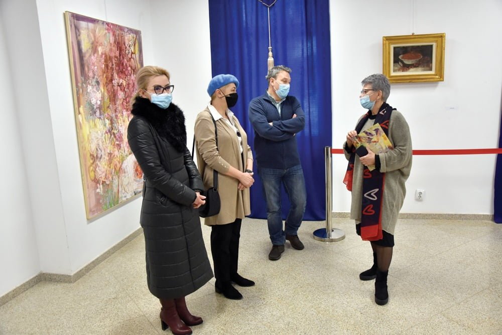 Artistele plastice Doina Mihăilescu și Camelia Rusu Sadovei în dialog, la vernisajul expoziției primeia dintre ele: ”Eu propun să scoatem telefoanele mobile și să ne uităm fiecare pe pagina de Facebook a celeilalte. Ar fi păcat să nu ne cunoaștem și noi după ce am stat atîta de vorbă”.