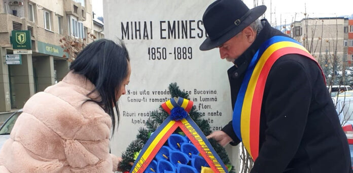 De Ziua Națională a Culturii, primarul Mihăiță Negură și Nicoleta Bogoș, managerul Bibliotecii Municipale Cîmpulung Moldovenesc, au depus o coroană de flori la statuia lui Mihai Eminescu din centrul municipiului: ”<Trecut-au anii>, doamna manager. Da` de ce-ați luat o coroană așa scumpă, dacă Poetul a scris negru pe alb <Nu voi mormînt bogat>?”. <Te duci> imediat <Pe aceeași ulicioară>, <Pe lîngă plopii fără soț>, și o schimbi”.