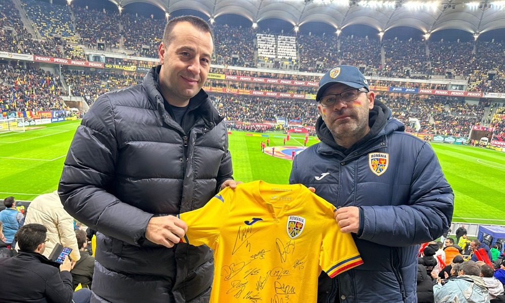 Președintele Asociației Județene de Fotbal, Ciprian Anton, cu tricoul cu semnături de la jucătorii Naționalei și cu viceprimarul Sucevei Lucian Harșovschi, la România – Elveția (1-0): ”Luciane, dă drumul că-i tricoul meu! Și nu care cumva să te-apuci să-l mîzgălești, că aici nu sîntem la primărie ca să semnezi tu tot ce prinzi ca viceprimarul”.