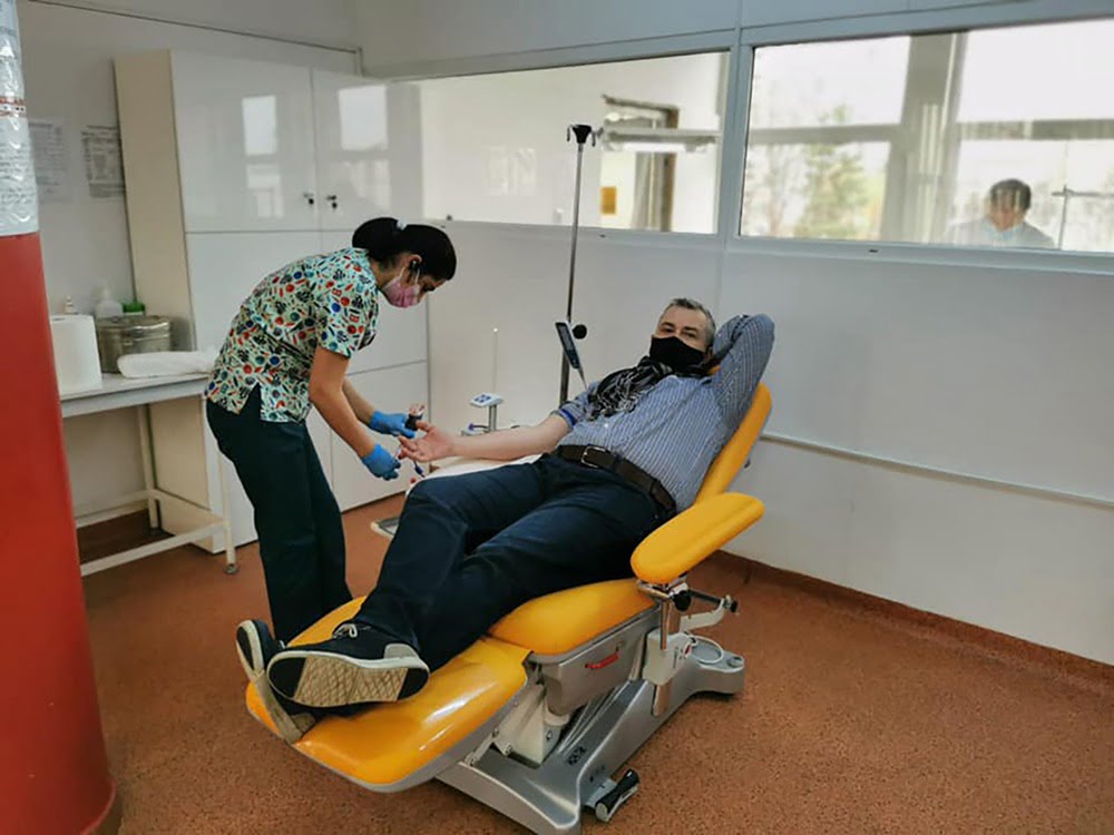Senatorul USR de Suceava, George Mîndruță, la Centrul Județean de Transfuzie Sanguină Suceava: ”Haideți, domnule senator, că nu am chef de glume: ori donați sînge, ori vă ridicați și plecați, pentru că noi, aici, nu luăm amprente și nici nu ghicim în palmă”.