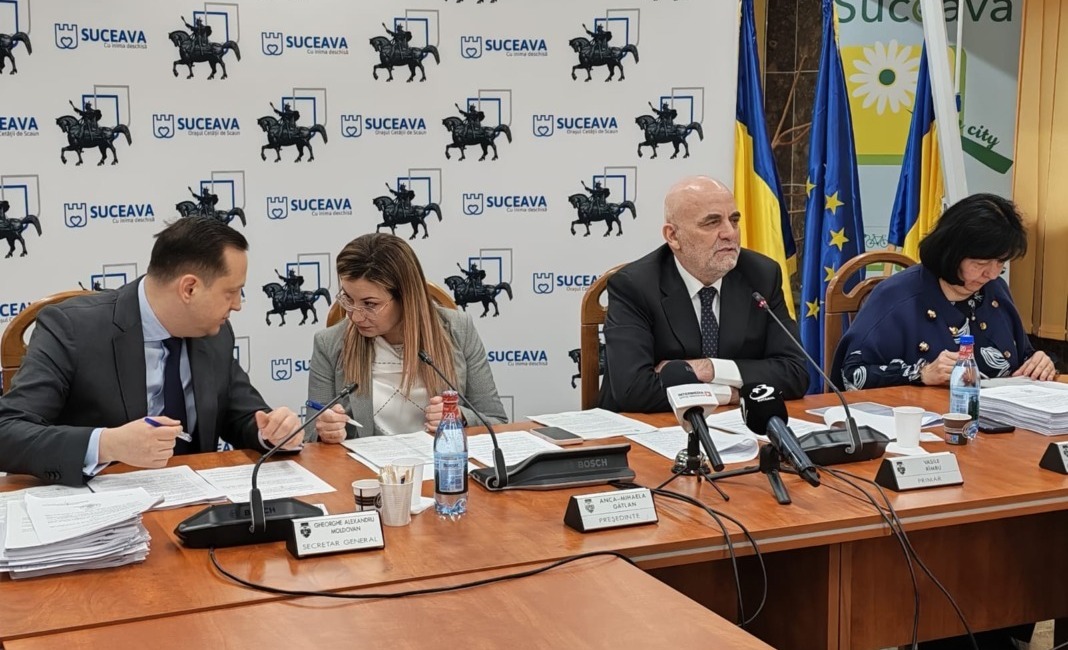 Consiliera locală Anca Gîtlan și secretarul Primăriei, Alexandru Moldovan, făcînd un schimb de informații în timp ce primarul Sucevei, Vasile Rîmbu, explică cum va duce orașul pe cele mai înalte culmi de progres și civilizație: ”Domnu` primar, domnu` primar, dar doamna Anca se uită urît la mine! Mai are un pic și mă ia la palme. Și să știți că nu mi-e de mine, dar palmele ar trebui să le folosească numai pentru a aplauda realizările dumneavoastră de excepție”.