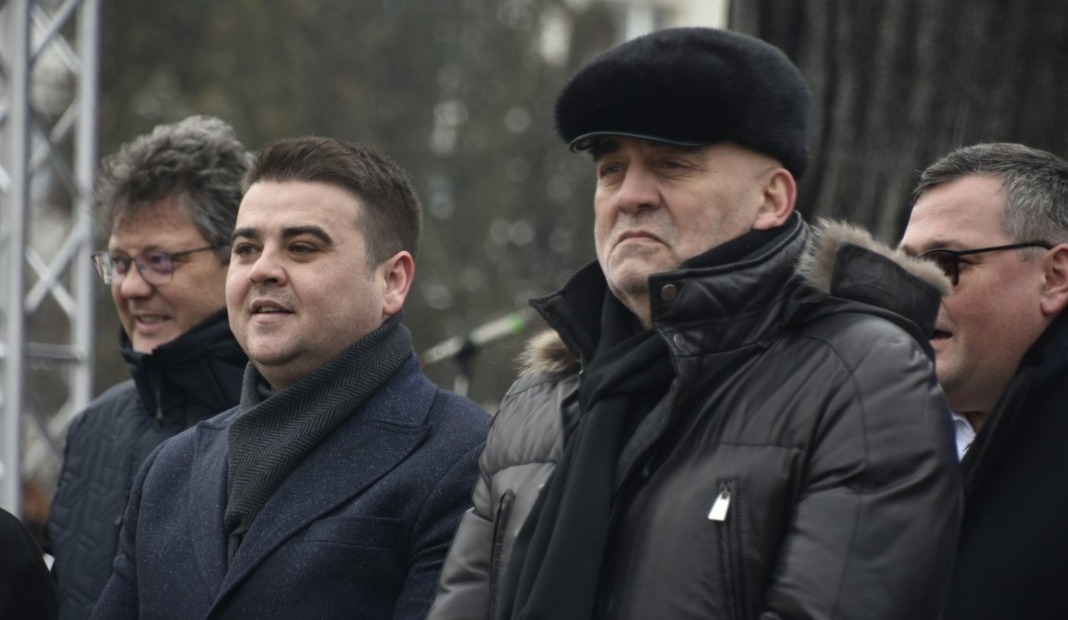 Președintele Consiliului Județean, Gheorghe Șoldan, și primarul Sucevei, Vasile Rîmbu, spectatori la parada obiceiurilor de iarnă: ”George, vezi cît de fioroși sînt mascații ăștia? Eu spun că trebuie să ne apucăm de treabă, pentru că dacă anul ăsta au venit la noi cu uratul, n-aș vrea ca în 2025 să ne urască atît de tare încît să ne vină cu urîtul”.