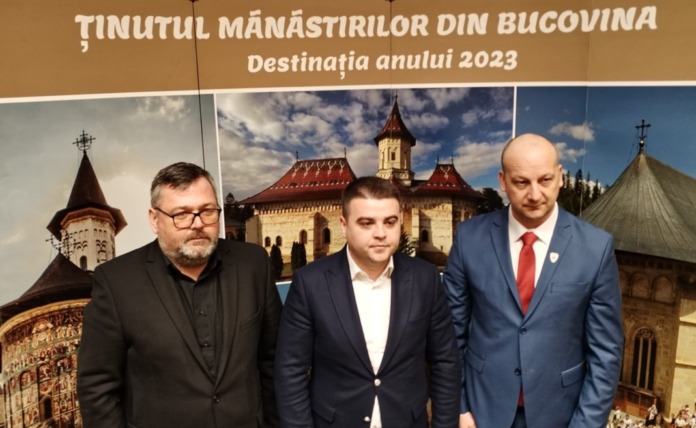 Președintele PSD al Consiliului Județean Suceava, Gheorghe Șoldan, încadrat de noii vicepreședinți ai CJ, social-democrații Nicolae Robu și Stelian Simeria: ”Ne fotografiem la acest panou cu o mănăstire din zona noastră pentru a sublinia încă o dată că sînt un om credincios. Nu degeaba i-am luat lîngă mine pe Robu lui Dumnezeu Nicolae și pe robul PSD Stelian”.