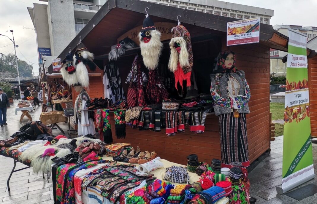 Imagine de la Tîrgul de Toamnă ”Produs în Bucovina”: ”Sărut-mîinile, doamnă. Scuzați îndrăzneala, dar de ce aveți buzele atît de roșii? Sînt date cu un ruj produs la cunoscutele fabrici de cosmetice din Bucovina sau ați servit, cum se spune pe la noi, o vișinată produsă în Bucovina?”.