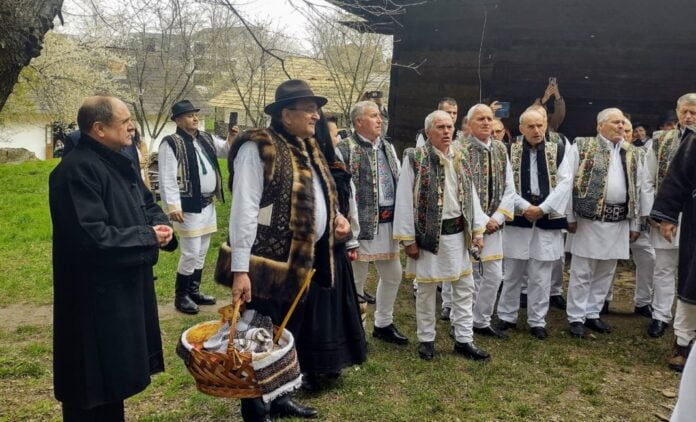 Niculai Barbă, alături de Gheorghe Flutur, care a venit cu coșul la sfințit la biserica din lemn ”Vama” din Muzeul Satului Bucovinean: ”Domnule președinte, dați la mine coșul să vi-l țin, ca să nu vă obosiți prea tare. E totuși prea mult și mielul din coș, și jderul de pe bundiță”.