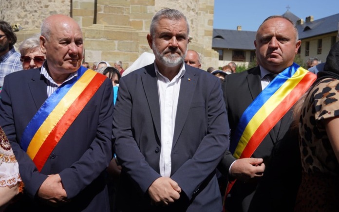 Senatorul PSD de Suceava George Mîndruță, încadrat de doi colegi de partid care-s primari, la Mănăstirea Dragomirna, care poartă hramul „Pogorîrea Duhului Sfînt“: ”Măi, oameni buni, iarăși ați luat steagurile de pe primărie? În plus, nu-i 1 Decembrie ca să aveți o scuză că v-ați învelit cu ele pentru că vă era frig”.