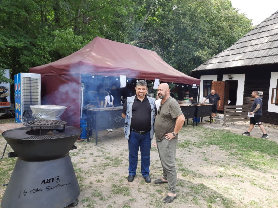 Directorul Muzeului Bucovinei, Emil Ursu, și chef Cătălin Scărlătescu înainte de deschiderea evenimentului ”Lume, lume…, hai la tîrg!” organizat de Centrul Cultural Bucovina: ”Domnu Ursu, și dacă nu vine lumea? În primul rînd eu nu mă tîrguiesc cu nimeni și în al doilea rînd sună mai tentant <lume, lume, hai la grătar!>”.
