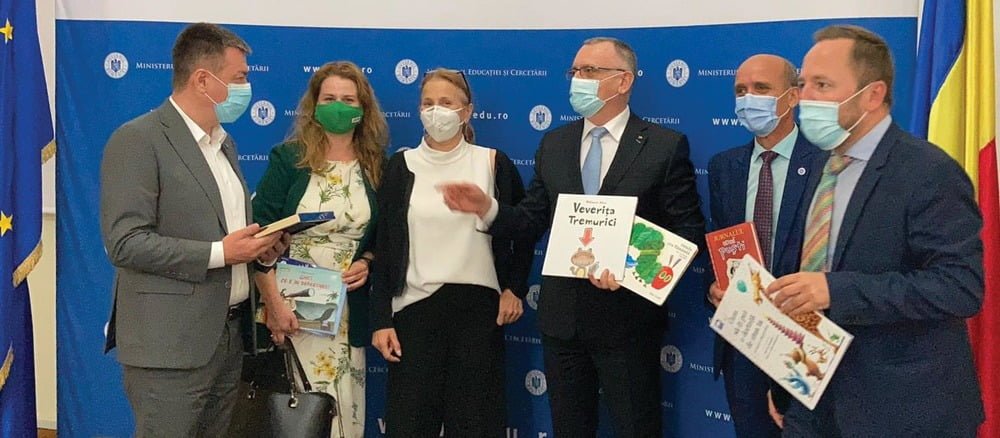 Ministrul Culturii, Bogdan Gheorghiu, și ministrul Educației, Sorin Cîmpeanu, au participat la o sesiune de informare cu privire la primele cinci luni ale programului „Citește-mi 100 de povești!”: ”Bogdane, mie mi-a căzut <Veverița tremurici>. Tu, dacă ești de la Suceava, sigur ai pus mîna pe <Fluturașul zglobiu>. Te rog să-l saluți cînd vă vedeți”.