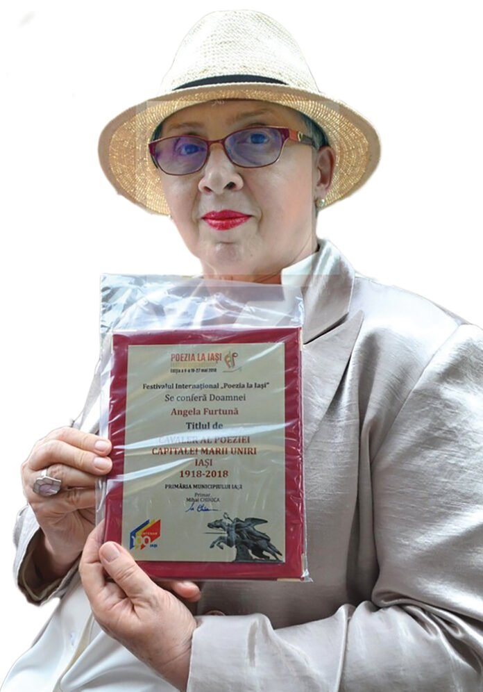 Angela merge mai departe. Iar în călătoriile sale printre litere găseşte uneori expresii fericite pe care ştie cum să le rînduiască astfel încît să bucure cititorul şi să impresioneze jurii. Scriitoarea suceveană Angela Furtună a primit titlul de Cavaler al Poeziei capitalei Marii Uniri. Scriitoarea a intrat în posesia titlului în cadrul celei de-a V-a ediții a Festivalului Internațional „Poezia la Iași”, unde a susținut şi recitaluri. Festivitatea a avut loc în Parcul Copou. Angela Furtună este abonată la premiile oferite de Iași, care i-a oferit în trecut titlul de Poet al Iașului și pe cel de Ambasador al Poeziei Românești. La ediția din acest an a festivalului ieşean au participat 58 de poeți din 18 țări. 31 de poeți au fost din străinătate, iar 27 din România. Dintre poeții români prezenţi la eveniment, șapte sînt laureați ai Premiului Național de Poezie „Mihai Eminescu”. Pentru cunoscători, iată numele cîtorva dintre scriitorii participanţi: Luis Armenta Malpica, Marco Onofrio, Hughes Labrusse, Mohamed Salmawy, Abdoulaye Fodé Ndione, Gabriel Martin Quiroz, Marco Onofrio, Nuno Judice, Jean Portante, Willem M. Roggeman, Adam Puslojic, Mircea Dinescu, Ion Mureșan, Dinu Flămând, Adrian Popescu, Gabriel Chifu, Varujan Vosganian, Ioana Diaconescu, Gellu Dorian, Nichita Danilov, Arcadie Suceveanu, Valeriu Stancu, Cassian Maria Spiridon şi Adi Cristi. Aşadar, o companie selectă şi onorantă pentru scriitoarea din Suceava care tace şi face. Face lucruri care plac şi sînt apreciate de public şi de profesioniştii din domeniu. Titlul de Jupân de Salon nu este de nivelul celui de Cavaler al Poeziei, dar noi atît avem, atît putem oferi.