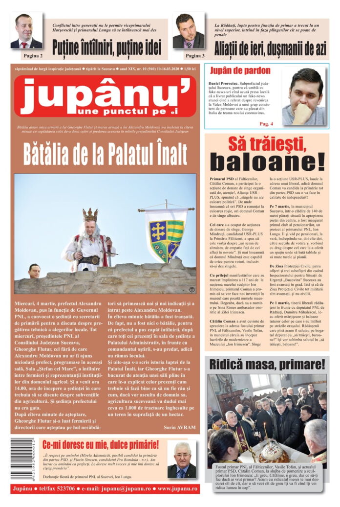 Prima pagină Jupanu – anul XIX, nr. 10 (940) 10-16.03.2020 De către Jupanu - 11 martie 2020 FacebookTwitterPinterestWhatsApp Jupanu – anul XIX, nr. 10 (940) 10-16.03.2020