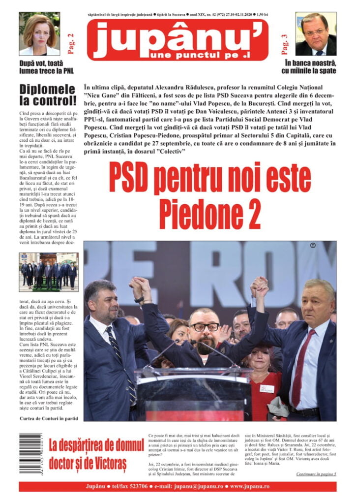 Prima pagină Jupanu – anul XIX, nr. 42 (972) 27.10-02.11.2020 De către Jupanu - 28 octombrie 2020 FacebookTwitterPinterestWhatsApp Jupanu – anul XIX, nr. 42 (972) 27.10-02.11.2020