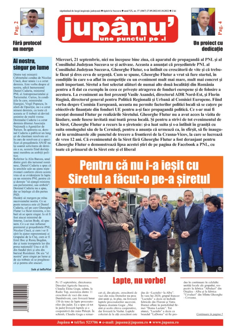 Prima pagină JUPÂNU’ – anul XX, nr. 37 (1067) 27.09.2022-03.10.2022 De către Jupanu - 27 septembrie 2022 FacebookTwitterPinterestWhatsApp
