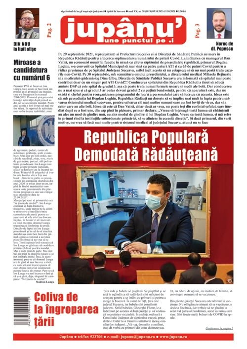 Prima pagină JUPÂNU’ – anul XX, nr. 38 (1019) 05.10.2021-11.10.2021 De către Jupanu - 5 octombrie 2021 FacebookTwitterPinterestWhatsApp