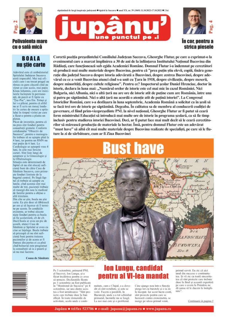 Prima pagină JUPÂNU’ – anul XX, nr. 39 (1069) 11.10.2022-17.10.2022 De către Jupanu - 11 octombrie 2022 FacebookTwitterPinterestWhatsApp