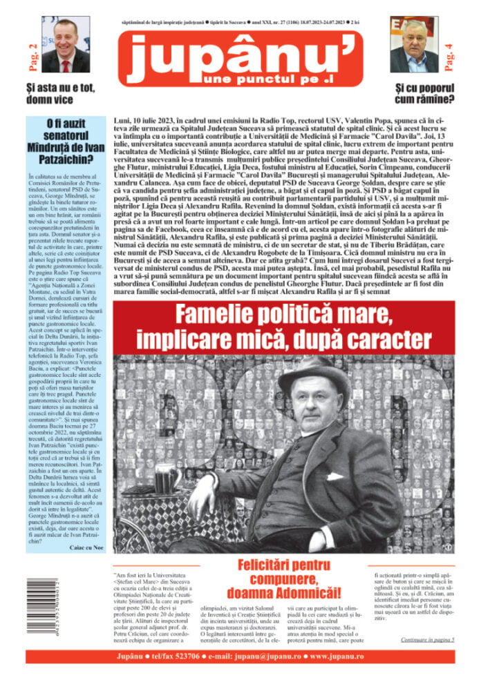 Prima pagină JUPÂNU’ – anul XXI, nr. 27 (1106) 18.07.2023-24.07.2023 De către Jupanu - 18 iulie 2023 FacebookTwitterPinterestWhatsApp