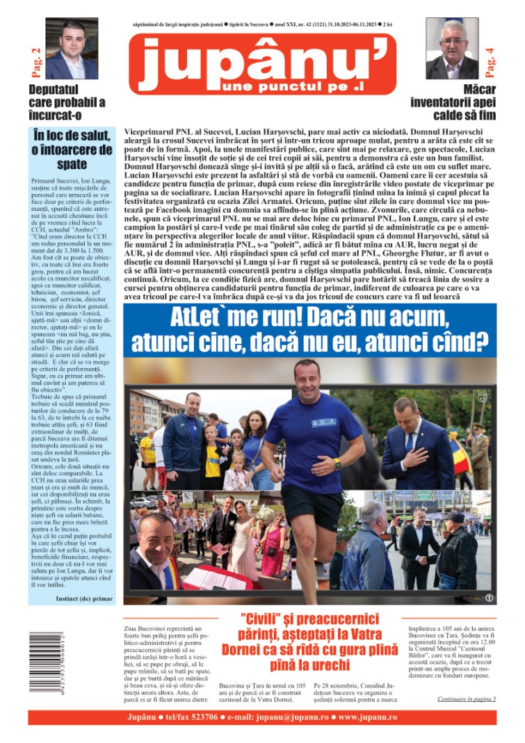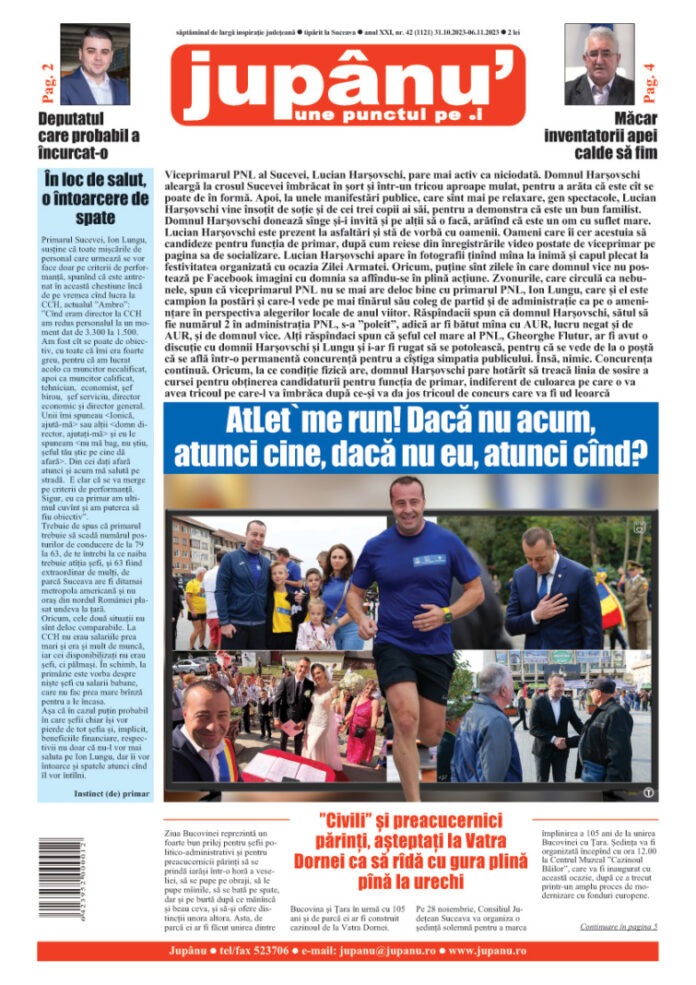 Prima pagină JUPÂNU’ – anul XXI, nr. 42 (1121) 31.10.2023 – 06.11.2023 De către Jupanu - 31 octombrie 2023 FacebookTwitterPinterestWhatsApp