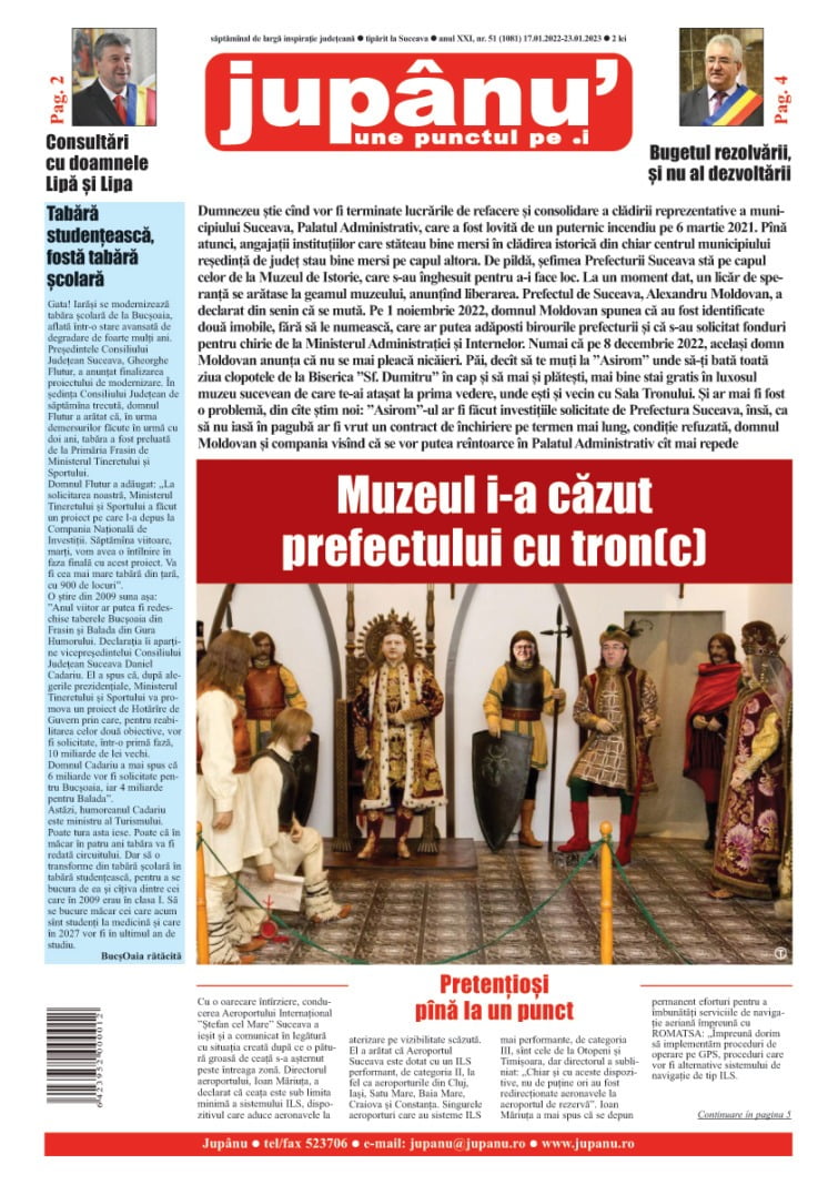 Prima pagină JUPÂNU’ – anul XXI, nr. 2 (1081) 17.01.2023-23.01.2023 De către Jupanu - 17 ianuarie 2023 FacebookTwitterPinterestWhatsApp