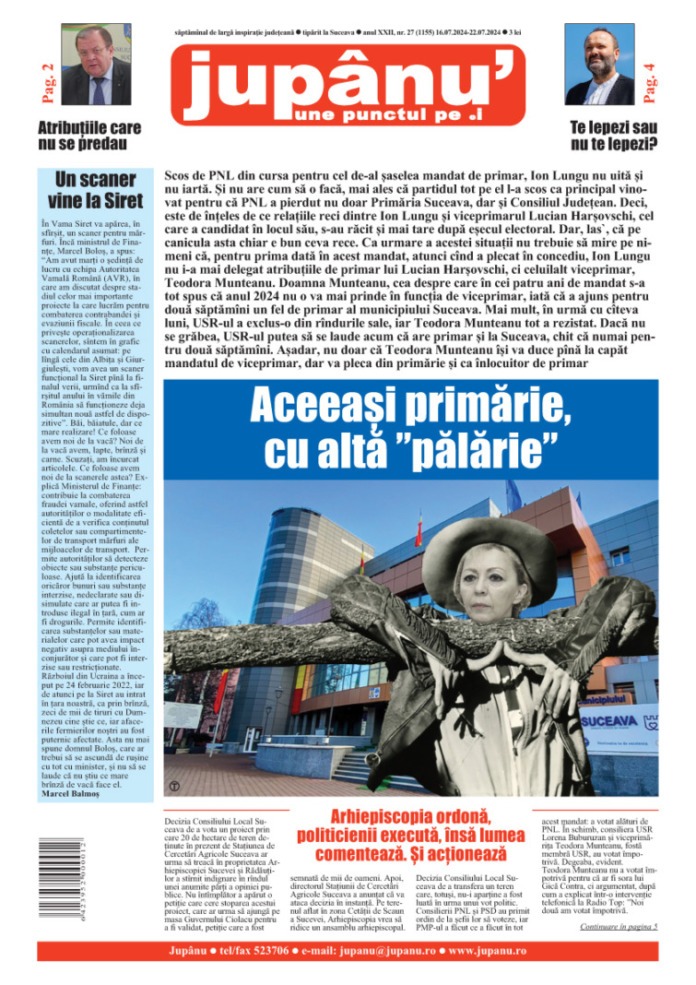 Prima pagină JUPÂNU’ – anul XXII, nr. 27 (1154) 16.07.2024 – 22.07.2024 De către Jupanu - 16 iulie 2024 FacebookTwitterPinterestWhatsApp